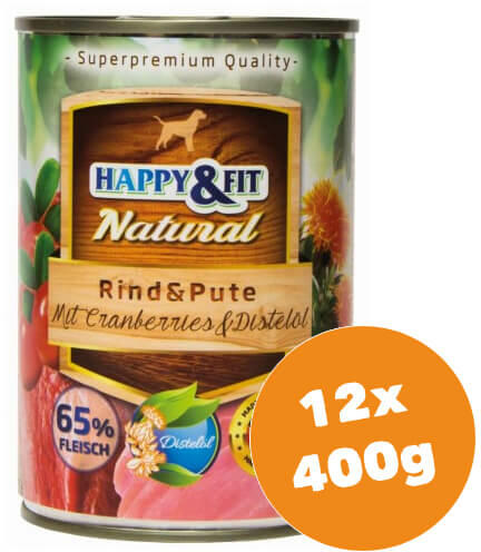 Natural Rind&Pute mit Cranberries&Distelöl Teljes értékű nedves eledel felnőtt kutyák részére, marha- és pulykahúsból áfonyával és sáfrányos szekliceolajjal. Videós termékismertető! Nézze meg a HAPPY&FIT Natural konzerveket, ahol láthatja milyen gazdag, húsokkal teli falatkákat ehet Kedvence! https://www. youtube. com/watch?v=MhIt9jgjEcc Milyen típusú kutyának