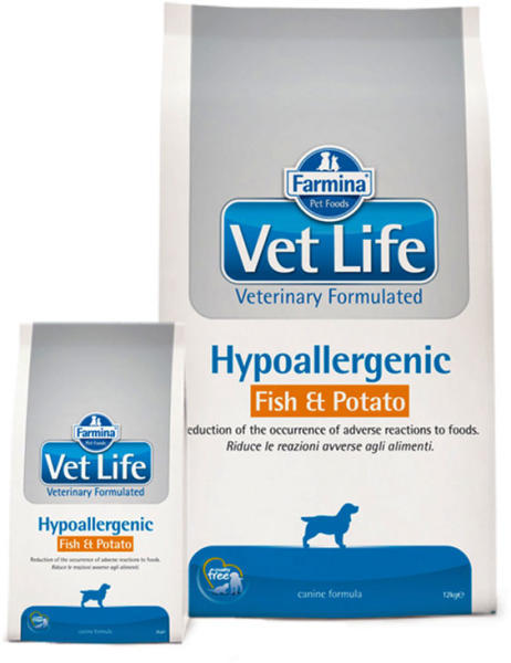 Termék részletekFarmina Vet Life kutya hipoallergén hal és burgonya 2kg - Termékleírás A Farmina Vet Life Hypoallergén Fish & Potato teljes értékű diétás eledel felnőtt kutyák számára az összetevő- és tápanyag-intolerancia csökkentésére, bőrgyulladás és szőrhullás esetén a bőrfunkció támogatására. Összetétel Batat (69%) Dehidratált halfehérje (14%) Halolaj Kalcium-ka rbon