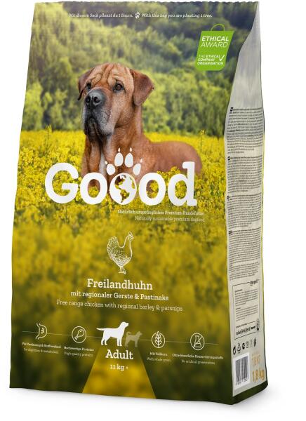 Teljes értékű szárazeledel felnőtt, közepes- és nagytestű kutyáknak. Jellemzők : - Szabadon tartott csirke- A bajor régióból származó árpával és paszternákkal. - Természetes, létfontosságú összetevők: napraforgóolaj és alma. Ez az ízletes csirkehús tanúsított szabadtartású farmról érkezik, és könnyen emészthető fehérjét tartalmaz. Az árpa és paszternák b