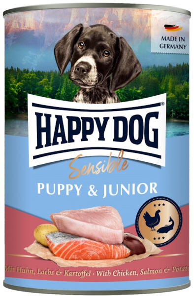 A Happy Dog Sensible Puppy & Junior nedves eledel ízletes tyúkból, friss lazacból és könnyen emészthető burgonyából áll. Az összetétel gluténmentes, és hozzáadott cukrot nem tartalmaz. A teljes fehérjemennyiségen belül 90 % állati fehérjével, valamint kiegyensúlyozott fehérjeváltozatosságával ez a magas értékű szárazeledel kutyáknak 8 hetes kortól adható. A k