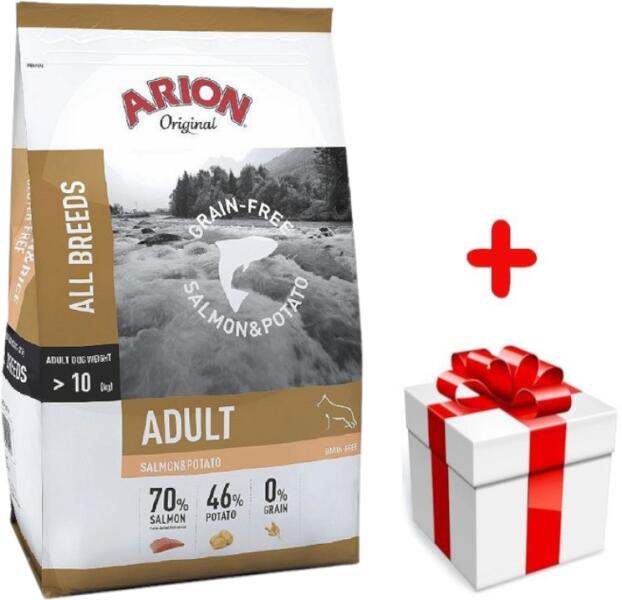 Arion Original Grain-Free Adult Salmon & Potato 12kg - Termékleírás Kiegyens lyozott, gabonafélék nélküli teljes értékű eledel minden fajta felnőtt kutyának. A válogatott természetes eredetű összetevők optimális emésztést és magas ízletességet biztosítanak. Az Arion Original Grain Free gluténmentes és érzékeny emésztőrendszerű kutyák számára is alkalmas. Lazac