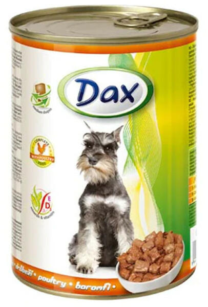 Darabos konzerv eledel zselében, felnőtt kutyák számára csirkével. Összetétel: hús és állati származékok 27% (4% csirkével) gabonafélék, ásványi anyagok. Analitikai összetevők: - Nedvességtartalom: 81% - Nyersfehérje: 7% - Zsírtartalom: 3% - Nyershamu: 3% - Nyersrost: 0,5% Adalékanyagok: Vitaminok és nyomelemek/kg: - A-vitamin: 1100 NE - D3-vitamin: 150 NE - E-vitamin: 10