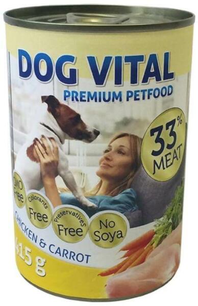 Szaftos darabok ízletes mártásban, csirkével és répával. Teljes értékű eledel felnőtt kutyák részére. Ez a nedves eledel kiváló választás a felnőtt kutyák számára, mely csirkével és répával teli szaftos darabokat kínál ízletes mártásban, hogy megfeleljen házi kedvenced táplálkozási igényeinek. Miért válaszd a Dog Vital Chicken&Carrot konzervet? Az eledel A