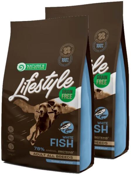 Natures Protection Lifestyle Dog Adult Grain Free White Fish további jellemzői: elsődle ges fehérjeforrása minőségi fehér húsú hal (tőkehal, sárga tőkehal, fekete tőkehal). nagyon ízletes formula a hozzávalók körültekintő megválasztásának köszönhetően. MicroZeoGen: A dinamikus mikronizált klinoptilolit aktívan serkenti a bél egészségét és a tápanyagok felszívód