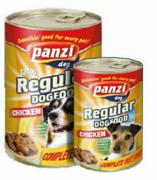 Panzi konzerv kutya csirkehúsos kiszerelés: 1240 gTeljes értékű kutyaeledel – Csirkehúsos Ízletes csirkehúsos falatok finom szószban Összetétel: Hús és hússzármazékok min 4% csirkehússal, növényi származékok, ásványi anyagok Analitikai összetevők: Nedvesség: 80%, Nyers fehérje 6,5%, Olaj és nyers zsír 4%, Nyers hamu 3,5%, Nyers rost 0,3% Tartósítószerektő l, szí