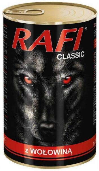 Dolina Noteci Rafi Classic Beef 1240g - Leírás Teljes értékű eledel felnőtt kutyáknak, minden fajtának, marhahússal. A Rafi Classic nedves kutyaeledel teljesen kiegyensúlyozott, ízletes eledel, amely megfelelő mennyiségű vitamint és ásványi anyagot biztosít. A Rafi Classic teljes értékű eledel minden fajta felnőtt kutyának. Az összetétel megfelel a felnőtt kutyák speciá