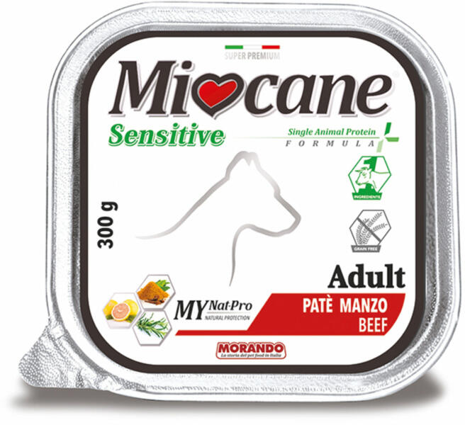 A Miocane Sensitive pástátom gabonamentes és 100% állati fehérjét tartalmaz, ideális érzékeny bőrű és bélrendszerű közepes kutyák speciális igényeinek kielégítésére.