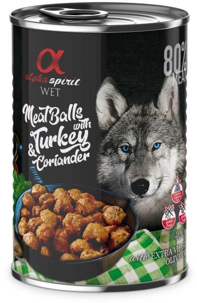 Gyártó: Alpha Spirit Modell: Turkey meatballs & coriander 400 g Leírás: Mert teljesen gabona- és gluténmentes Mert húsliszt felhasználása helyett zamatos, friss húsból készül Mert mesterséges színezékektől és ízfokozóktól mentes Mert a benne lévő zsírtartalom teljes mértékben a természetes hús- és halalapanyagokból származik Összetétel Hús 80% (csirkehús 70%,