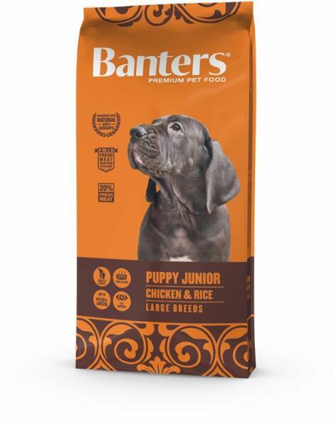 A Visán Banters Dog Puppy Junior Large Breed Chicken & Rice formulája ideális a nagyméretű kölyökkutyák (25kg testsúly felett) számára 15 hónapos korig. Nagyobb tápszemei illeszkednek a nagytestű kölyökkutyák igényeihez. Kifejezetten úgy fejlesztették ki, hogy a nagy testű kutyakölykök ne kapjanak túl sok zsírt, ami korai túlsúlyhoz vezethet és túlterheli a növés