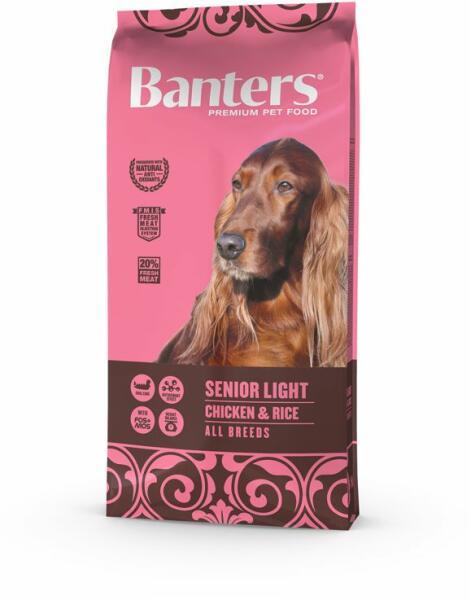 A Visán Banters Dog SeniorLight ideális a 7 évnél idősebb, valamint hízásra hajlamos felnőtt kutyák számára. Speciális, könnyebben rágható tápszemcsék, melyek segítik és támogatják az idős kutyák emésztését. Nagy mennyiségű állati fehérje tartalmának köszönhetően optimalizálja a testsúlyt. Enyhíti az öregedés hatásait a komplex természetes antioxidáns tart