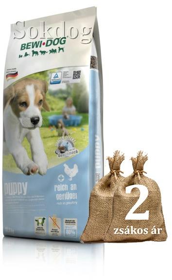 BEWI DOG PUPPY teljes értékű eledel minden fajta kölyök kutyának 4 hónapos korig, kis- és közepes méretű kutyák további nevelésre. Magas fehérje tartalma segít megerősíteni az izmokat, a baromfi tartalma elősegíti az egészséges emésztést. Egészében erősíti az immunrendszert. Nem tartalmaz szóját, mesterséges színezéket, aromákat és tartósítószereket. Gazdag b