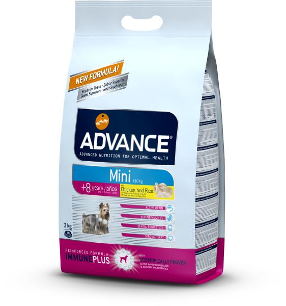 Az Advance egy teljes értékű szuperprémium csirkeeledel, amelyet kifejezetten idősebb, kistestű kutyák (8 éves és idősebb) számára terveztek. könnyen emészthető fehérjék és szénhidrátok forrása 8 éves és idősebb kutyák számára készült, akiknek kifejezetten az ő táplálkozási igényeikhez igazított étrendre van szükségük a táplálék kondroitin- és glükózami