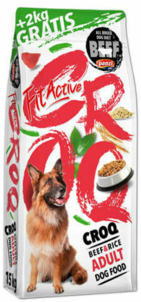 FitActive CROQ Premium 3x15+2kg Beef&Rice szárazeledel felnőtt kutyáknak készült prémium minőségű táp, mely nem tartalmaz szóját és mesterséges színezékeket. Ínycsiklandozó marha ízesítésű falatok, mely tökéletes választás a normál aktivitású kis kedvencednek. Vitaminokban és ásványi anyagokban gazdag összetétel, mely minden fontos tápanyagot is tartalmaz, am