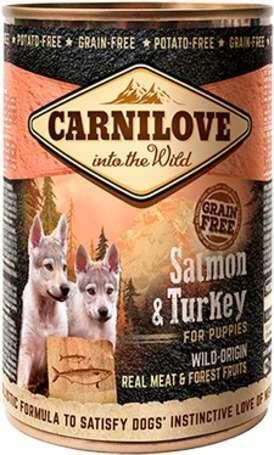 9.6kg Teljes értékű, gabona- és burgonyamentes pástétom valódi hússal kölyökkutyák (1-12 hónap) részére lazaccal és pulykahússal.