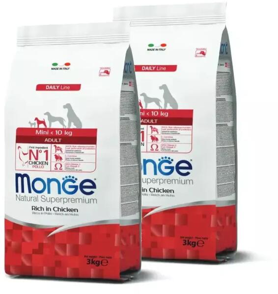 Monge Dog Speciality Line Monoprotein Adult - Chicken, Rice, PotatoTeljes értékű szárazeledel felnőtt kutyák számára csirkehússal, rizzsel és burgonyával. A kiváló minőségű alapanyagoknak és az olasz kutatómunkának köszönhetően egészséges táplálkozást biztosít kutyájának. A fő összetevője a csirke, ami könnyen emészthető és a hozzáadott friss húsnak köszönh