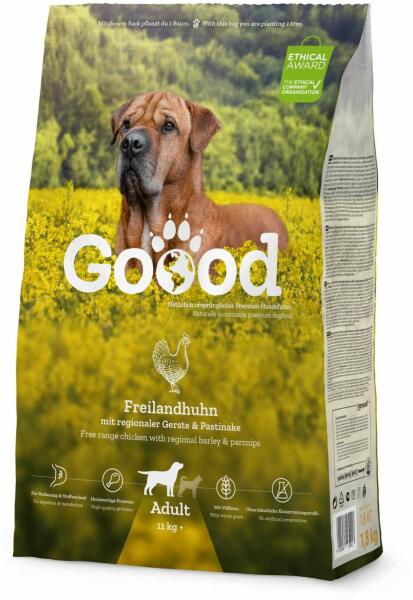 Teljes értékű szárazeledel felnőtt, közepes- és nagytestű kutyáknak. Jellemzők: - Felnőtt kutyáknak 11 kg-tól - Nagyobb méretű tápszemek - Szabad tartásból származó zsenge csirkehússal - 73 % eredeti húsarány (1 kg szárazeledel 730 g csirkehúst tartalmaz) - Magas arányú nyers alapanyagok a régiónkból - Jót tesz az emésztésnek és az anyagcserének - Búzamentes Ös