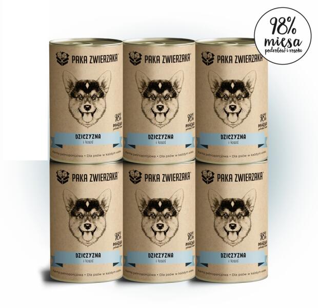 Paka Zwierzaka Vadhús és lazac 400g - Termékleírás A természetes nedves eledel teljes értékű és kiegyensúlyozott eledel minden korú kutya számára. Akár 98%-ban szarvashúst tartalmaz húslevessel és lazaccal! A legmagasabb minőségű friss és lédús húsból és belsőségekből készül. Összetétel Vaddisznó és lazac 98,4% (50% vaddisznóhús, értékes vaddisznó belsősé