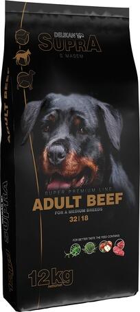 3kgSupra Dog Adult Fresh Beef teljes értékű szuperprémium eledel felnőtt kutyák számára, kiváló minőségű friss marhahússal. Speciálisan lett fejlesztve és tervezve, hogy fedezze az aktív és megterhelt kutyák igényeit. Omega-6 és Omega-3 telítetlen zsírsavakat tartalmaz, amelyek javítják az egészséges bőr minőségét és a fényes szőrzet minőségét. A granulátum fo