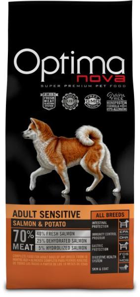 Az Optimanova Adu lt Sensitive Salmon & Potato egy ízletes, teljes értékű lazacos burgonyás száraztáp felnőtt kutyák számára. Kifejezetten érzékeny gyomrú kutyák számára kifejlesztett eledel. Kiválóan emészthető tápanyagok biztosítják a maximális felszívódást, így serkentve a kutyusok bélműködését és emésztését. Ínycsiklandó lazacos-burgonyás ízkombin