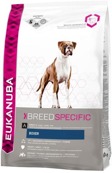 Az Eukanuba Breed Boxer egy ízletes teljes értékű száraztáp felnőtt boxer kutyáknak. Az Eukanuba kutyatápok válogatott, minőségi összetevőket tartalmaznak és kizárólag állati eredetű fehérjét tartalmaznak. A Breed Boxer táp kifejezetten felnőtt boxer fajtájú kutyák igényei szerint lett kifejlesztve. Isteni csirkés pulykahúsos szárazeledel. - A csirkehús jól hasznosu