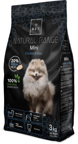 Rex Natural Range Mini csirke és rizs 3kg Teljes értékű eledel felnőtt kistestű kutyáknak 12 hónapos kortól Fogápolás Optimális kalcium/foszfor arány, a foszfátok hozzáadásával, mint összetevővel: Ezek hozzájárulnak a fogkövek lerakódásának csökkentéséhez a fogakon. Emellett a krokettek formája és textúrája hozzájárul ahhoz, hogy a fogak hosszabb ideig tiszták é