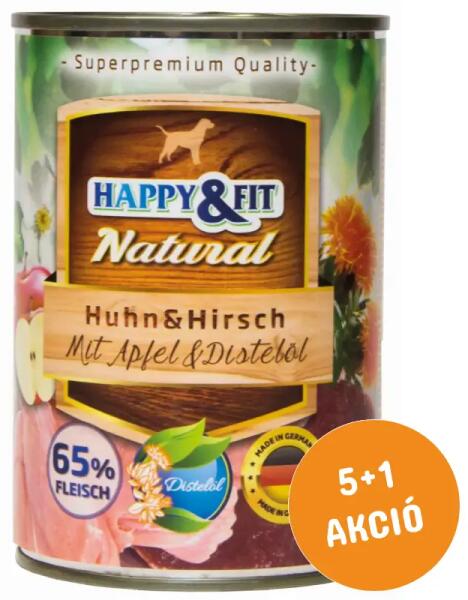Natural Huhn&Hirsch mit Apfel&Distelöl Teljes értékű nedves eledel felnőtt kutyák részére csirkéből és szarvasból, almával és sáfrányos szeklice olajjal Videós termékismertető! Nézze meg a HAPPY&FIT Natural konzerveket, ahol láthatja milyen gazdag, húsokkal teli falatkákat ehet Kedvence! https://www. youtube. com/watch?v=MhIt9jgjEcc Milyen típusú kutyának ajá