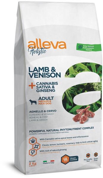 Alleva gabonamentes holisztikus eledel bárányból és vadhúsból közepes és nagytestű felnőtt kutyák számára. ginzenggy kérrel az életerőért a szegfűszeg, citrom, kurkuma, rozmaring orvosilag segít a sejtek öregedésének visszafogásában cannabis sativa virágzatát és leveleit tartalmazza Az Alleva Holistic vezető az olasz kisállat eledel piacon. Finoman párolva a felhaszn