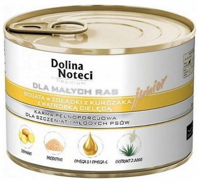 Dolina Noteci Premium for Small Dogs Junior Rich in Chicken Gizzard and Veal Liver 185g - Termékleírás A borjúmájas csirkeméhben gazdag teljes értékű eledel kölyök- és fiatal kutyáknak, kis fajtáknak, olyan aminosavakat tartalmaz, amelyek más húsfajtákon alapuló termékekből hiányoznak. A csirke és a borjúhús kiváló vas-, szelén-, réz- és cinkforrások. Egészségesen