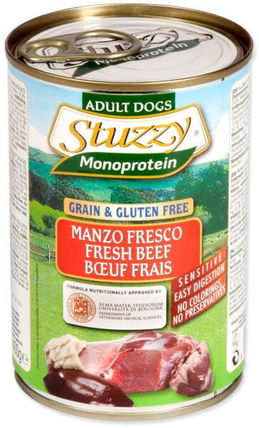 Teljes értékű monoprotein eledel felnőtt kutyák számára marhahússal. Összetétel: hús és állati eredetű termékek (marhahús 70 %), marhahúslé 28,9 %, ásványi anyagok 1 %, lenmagolaj 0,1 %. Analitikai összetevők: nyersproteinek 10,9 %, nedvességtartalom 75 %, nyersolajok és zsírok 6,9 %, nyershamu 2,5 %, nyersrostok 0,4 %. Kiegészítő anyagok: D3-vitamin 200 IU/kg, cink-sz