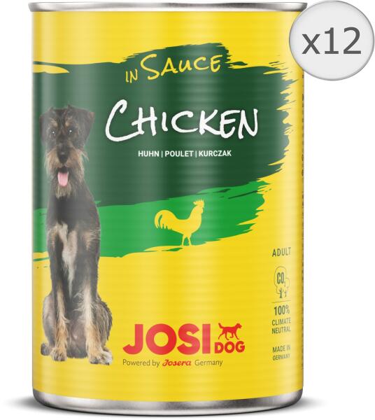 JOSIDOG - CSIRKE SZÓSZBAN A JosiDog Chicken in Sauce prémium minőségű nedves eledel felnőtt kutyák részére. A kiváló íznek köszönhetően a kutyák szívesen fogyasztják. A szószban lévő csirkehús falatok fantasztikus ízélményt nyújtanak. Finom eledel, mesterséges adalékok nélkül. Az E-vitamin védi a sejteket a káros szabad gyököktől, míg a D3-vitamin segít megőri