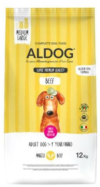 Az Aldog Adult Medium Large Beef kutyatáp teljes értékű szárazeledel, amely egyetlen fehérjeforrása a magas fehérjetartalmú marhahús. Közepes és nagytestű kutyáknak ajánlott. Gondosan válogatott receptúrája hamar rabul ejti a kis kedvenceket és még a pocakjukat is kíméli. A marhahús kiváló minőségű, koncentrált fehérjeforrás, amely hozzájárul az izomzat építés