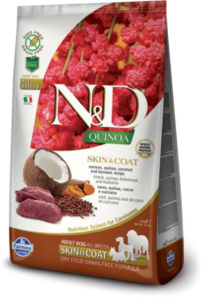 Az N&D Grain Free Quinoa Skin&Coat Vadhús egy teljes értékű ízletes száraztáp kutyák számára. Közepes- és nagytestű kutyáknak. Testmérethez igazított tápszemcseméret. Gabonamentes formula. Támogatja az állatok szép és egészséges bőrét és szőrzetét. A vadhúsos, quinoás finom eledellel változatossá tehetjük a kiskedvencek étrendjét. A vadbúsok az egyik le