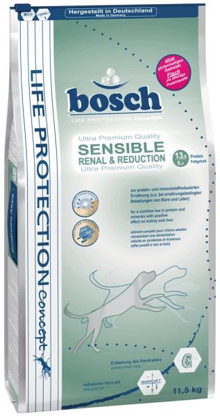 A Bosch Sensible Renal & Reduction kutyatápot az olyan érzékeny, felnőtt kutyák számára fejlesztették ki, amelyek fehérjében és ásványi anyagban szegény táplálékot igényelnek. A Bosch Renal & Reduction kutyatáp különösen ajánlott az anyagcsere-problémákkal küzdő kutyáknak. A jelentősen lecsökkentett fehérjetartalom és a speciális fehérjehordozók – kizá