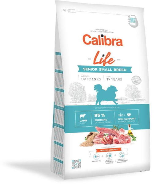 Calibra Dog Life Senior Small Breed Lamb 1,5kg Komplett szuperprémium hipoallergén száraz kutyaeledel kis fajtájú felnőtt kutyáknak (10 kg-ig, 7+ éves korig) Kiválóan emészthető hipoallergén étel kiváló minőségű bárányhússal és alacsony gabonatartalommal biztosítja az idősebb kutya érzékeny emésztésének szükségleteit. Az állati eredetű fehérjék , amelyek a telje