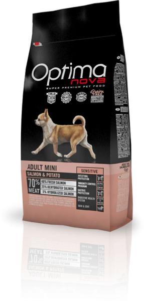 Az Optimanova Adu lt Mini Salmon & Potato egy ízletes, teljes értékű lazacos burgonyás száraztáp kistestű felnőtt kutyák számára. Kifejezetten kis testméretű érzékeny gyomrú kutyák számára kifejlesztett eledel. Kiválóan emészthető tápanyagok biztosítják a maximális felszívódást, így serkentve a kutyusok bélműködését és emésztését. Ínycsiklandó lazacos