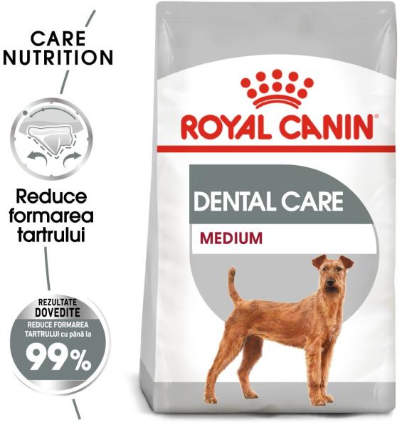 ROYAL CANIN CCN Medium Dental Care 3kg - Termékleírás Teljes értékű eledel felnőtt, 12 hónaposnál idősebb, 11-25 kg-os fajtájú, fogérzékenységre hajlamos kutyák számára. A ROYAL CANIN Dental Care Medium 11 és 25 kg közötti kutyák számára alkalmas. A magas ízletességű teljes értékű eledel egyedülálló receptúrája a kutya fogait is védi. A ROYAL CANIN Dental Care M