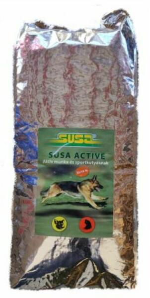 Susa Active száraztáp aktív és sportkutyáknak készült teljesértékű eledel. Nagy igénybevételnek kitett sport és munkakutyáknak ideális szárazeledel. A Susa kutyatápok koncepciója és receptúra kialakításánál az emészthetőség a legfontosabb. Válogatott jól emészthető összetevők teszik ínycsiklandóvá a tápokat. A Susa Active táp jellemzői: - Jól emészthető, m