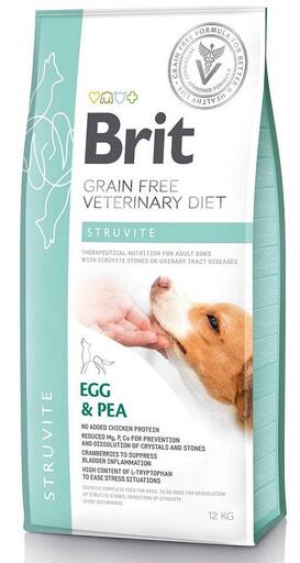 Gyártó: Brit Modell: Veterinary Diets Dog Struvite 12 kg Leírás: Állatorvosi eledel felnőtt, alsó húgyúti problémákkal küzdő kutyák számára. Segít kiküszöbölni a struvitkövek és az oxalátok kockázatát a kutyáknál. A formula gabonamentes, borsó- és tojásalapú. Összetétel: sárgaborsó (25%), tojás (12%), zöldborsó (12%), hidrolizált pulykafehérje (11%), csirkez