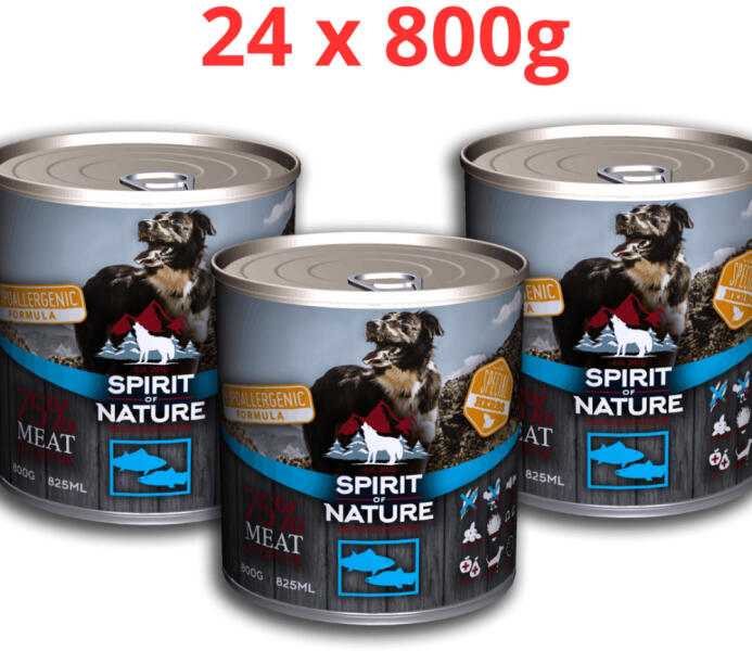 Spirit Of Nature Hypoallergén gabonamentes konzerv felnőtt kutyák számára tonhallal, lazaccal , speciális összetételű gyógynövényekkel, gyümölcsökkel. 75%hústartalom. Spirit Of Nature Hypoallergén gabonamentes konzerv felnőtt kutyák számára tonhallal, lazaccal , speciális összetételű gyógynövényekkel, gyümölcsökkel. 75%hústartalom. Csirke és gabona hozzáadása né