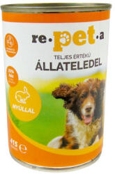 A Repeta Classic nyulas konzerv egy teljes értékű eledel felnőtt kutyáknak. Összetétel : Hús és állati eredetű származékok 25% (nyúl 4%), gabonafélék, ásványi anyagok. Adalékanyagok/kg: Vitaminok és nyomelemek : A-vitamin (retinil-acetát) 1.900 NE, D3-vitamin (kolekalciferol) 190 NE, E-vitamin (RRR-alfa-tokoferil-acetát) 10 mg, réz (réz(II) szulfát pentahidrát) 1,4 mg, ci
