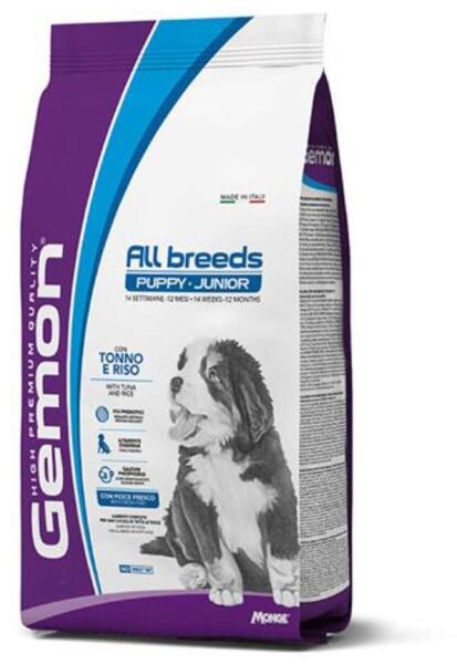 A Gemon All Breeds kölyök és junior tonhallal és rizzsel teljes értékű eledel minden méretű kölyökkutya számára. A termék kiváló minőségű összetevőket tartalmaz, beleértve a tonhalat, ami alapvető tápanyagforrás, és a rizst, ami szénhidrátforrás, és az extrudálási folyamatnak köszönhetően kiválóan emészthetővé válik. Miért válaszd a Gemon All Breeds köly