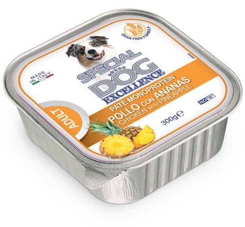 Minimum rendelhető mennyiség: 6 db Special Dog Excellence Monoprotein Pollo Csirkehús+ Ananász pástétom felnőtt kutyáknak. Special Dog Excellence Monoprotein Pollo Csirkehús+ Ananász pástétom felnőtt kutyáknak. -Csirke , hozzáadott D3 és E vitamin, gyümölcsökkel dúsítva -szója, növényi adalékok, színezék és tartósítószerek hozzáadása nélkül -egyetlen proteinforr