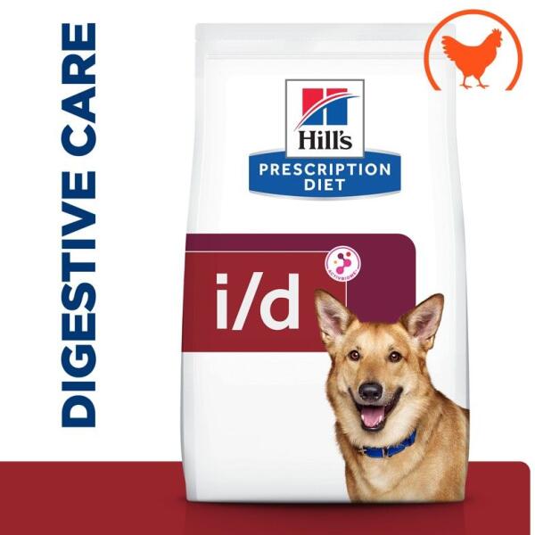 Hill's PRESCRIPTION DIET i/d csirkés kutyaeledel. A Hill's Prescription Diet i/d száraz kutyatáp kiváló ízű eledel, amely klinikailag igazoltan csökkenti az emésztőszervi zavarok tüneteit. Ezt a könnyen emészthető eledelt elektrolitokkal és B-vitaminokkal egészítettük ki a tápanyagok könnyű felszívódásának elősegítésére és az elvesztett tápanyagok pótlására. A Hil