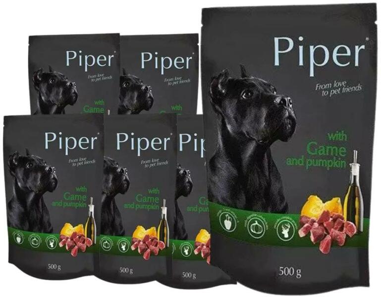 Dolina Noteci Piper kutyáknak baromfival és sütőtökkel 500g - Termékleírás A kutyáknak szánt nedves eledel vadhússal és sütőtökkel fehérjében gazdag, magas lizin- és leucin-tartalommal az izmok és a csontok erősítése érdekében. A vadhús értékes vas-, szelén-, réz- és cinkforrás - ezek az ásványi anyagok növelik a szervezet ellenálló képességét és antioxidán