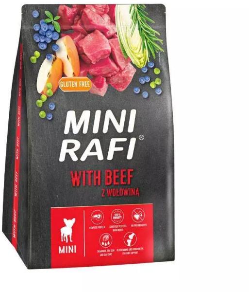 Teljes értékű szárazeledel felnőtt kistestű fajtáknak marhahússal A felnőtt kistestű kutyafajták számára fejlesztettük ki a Mini Rafi szárazeledelt marhahússal, amelyet egyedülálló íz, számos értékes adalékanyag, magas teljes értékű fehérjetartalom és a kutyája számára fontos zsírsavak jellemeznek. Receptjét úgy állítottuk össze, hogy fedezze az összes alapve