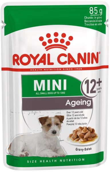 Támogatja egészséges öregedést Egészséges vesék, csontok és ízületek Vitális csodás bőr és a szőrzet Royal Canin Mini Ageing 12+ Gravy nedves kutyaeledel Teljes értékű táp kistestű idős kutyák számára (1-10 kg) - 12 éves kor felett Royal Canin Mini Ageing fő jellemzői/előnyöi: Az egészséges öregedés támogatása A vese egészségének támogatása A bőr és a sz