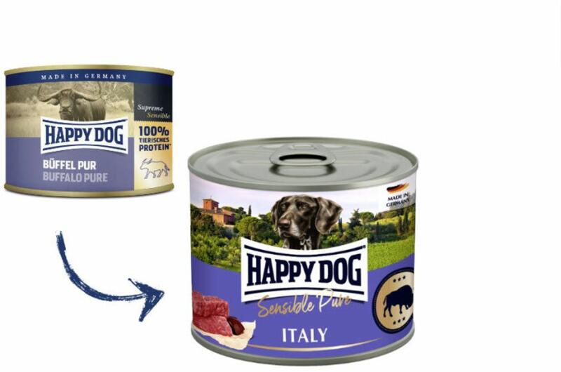 A Happy Dog Sensible Pur - Büffel egy teljes értékű prémium táp ételintoleranciában vagy allergiában szenvedő kutyák számára. A Sensible Pur konzerv hús egyetlen állati fehérjeforrást tartalmaz, ezért ideális pelyhekkel keverni nem tartalmaz szóját, növényi összetevőket, mesterséges színezéket és mesterséges tartósítószert Összetevők : Hús és melléktermékek (