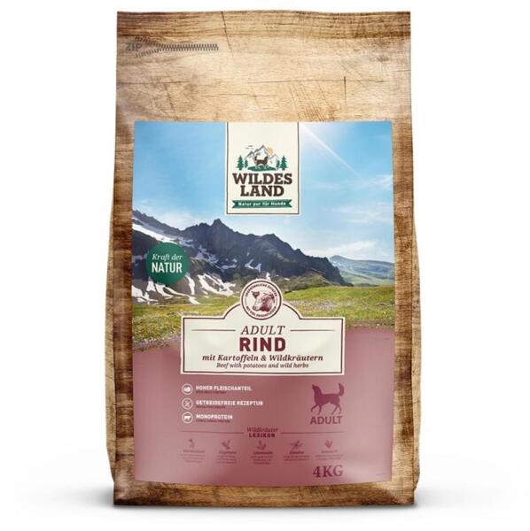 Nagy szemcseméretű, kiváló minőségű alapanyagok és összetevők, 40% marhahús tartalommal és értékes vadon termő fűszernövényekkel. Wildes Land Marha, Burgonya és Vadfűszerek – Természetes táplálék felnőtt kutyáknak A Wildes Land Marha, Burgonya és Vadfűszerek szárazeledel prémium minőségű összetevőivel tökéletes választás kutyád egészségének és vitalit