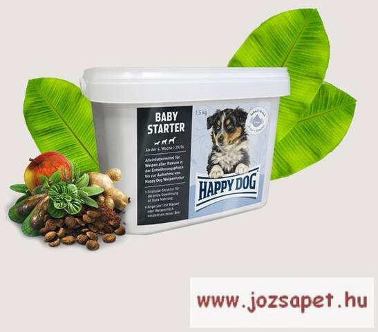 Happy Dog Baby Starter elválasztó eledel, táp pici kölyök kutyának 1,5kg4 hetes kortól ajánlott. Magas minőségű teljesértékű granulátum kölyökkutyáknak az elválasztási időszakban. Happy Dog Baby Starter – Magas minőségű teljesértékű granulátum kölyökkutyáknak az elválasztási időszakban Optimálisan összeállított eledel kölyökkutyák számára az egészsége