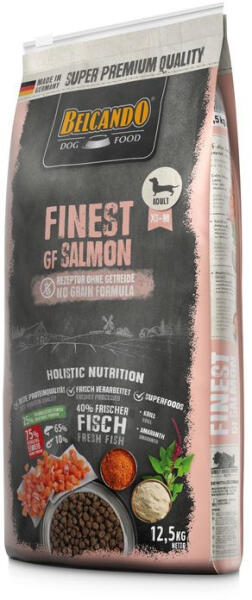 Finest Grain Free Lazac 12,5kg Ajánlott kis- és közepes testű fajták válogatós, kifejlett kutyáinak, akik érzékenyek a gabonára és a szárazföldi melegvérű emlős állatokból vagy madarakból származó fehérjékre. Különleges összetétel, különleges esetekhez. Mivel kizárólag állati fehérjeforrásként a hal került felhasználásra , ezért ez a gabonamentes receptúra